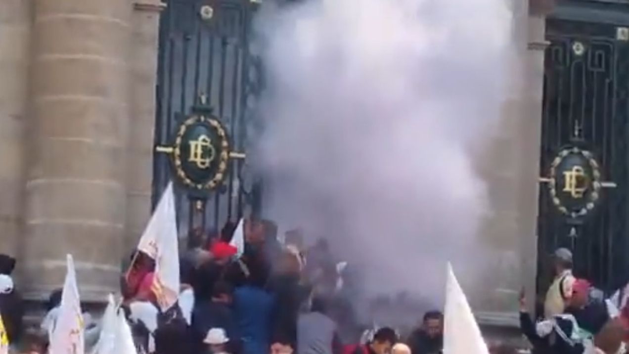 Cabe destacar que durante los primeros instantes del intento de portazo, algunos manifestantes lograron ingresar, pero el resto se quedó a las afueras ante la acción del personal de seguridad. La puerta finalmente fue cerrada luego de que uno de los elementos roció el contenido de un extintor sobre los manifestantes que la empujaban.